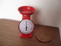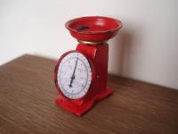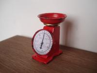 Bilancia in legno e metallo rossa invecchiata