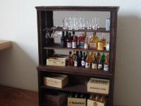 Mobilein legno di noce per pub, bar con ripiani e specchio in scala 1:12